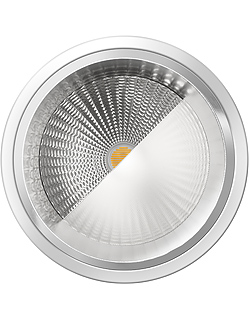 Umlaufender Reflektor mit verdecktem Leuchtenabschlussring. Er wird von dem Reflektorkragen überdeckt und ist somit nicht mehr sichtbar.