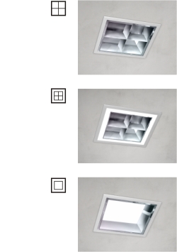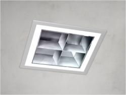 Due to the use of compact fluorescent lamps, these technically high-specification, louvred luminaires are powerful and efficient despite their small size. Equipped with electronic control gear, mainly featuring MultiPower technology. The 2-part reflector system consists of mirror reflectors and a louvre/cone, which is removable without tools, finished in silver satin-matt and made of aluminium with reflection-intensifying coating. |