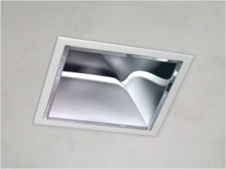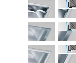 2-part interchangeable frame system. The luminaire is supplied with a fixed frame. A separate cover frame is secured with a spring clip. Suitable for retro-fitting photo-optic accessories.