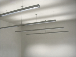 Parabolic louvre with mirror-finish surfaces. Aluminium with reflection-intensifying coating to increase the light output ratio. Computer-workstation compatible.
