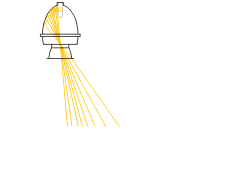 Eine Kombination aus einem zweiteiligen Ellipsoidreflektor und einem entblendenden Konus. Die Fokussierung des Lichtstroms erfolgt definiert unmittelbar vor der Lichtaustrittsöffnung der Leuchte. Die Reflektoreinheit ist aus Aluminium 99,98 geglänzt und stückeloxiert. Oberfläche in Silber hochglänzend, glatt.